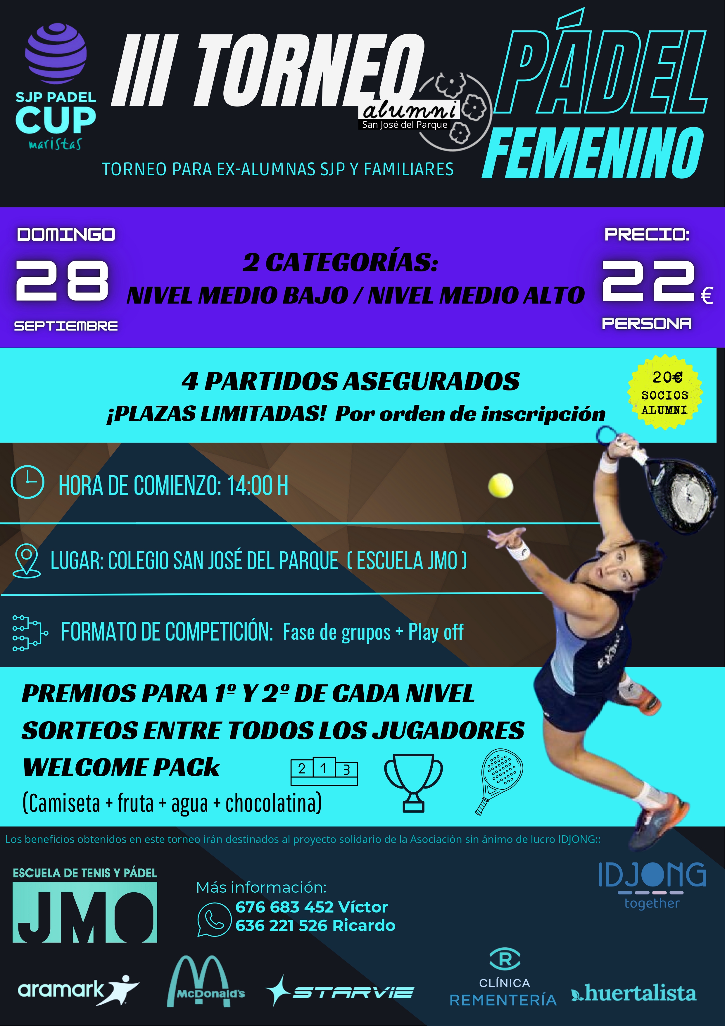 Ya están abiertas las inscripciones para el III Torneo Femenino de Padel de Alumni San José del Parque.